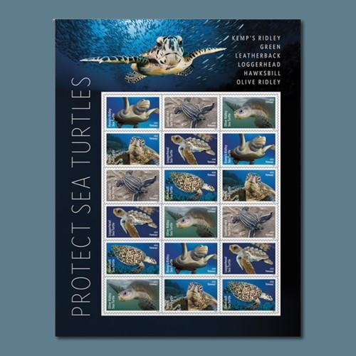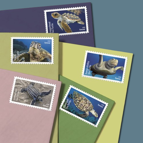 The Protect Sea Turtles Forever Stamps feature intricate, vibrant designs that bring the charm and grace of sea turtles to life. Whether you’re mailing a heartfelt letter, sending an invitation, or adorning a collector’s album, these stamps stand out with their artistic portrayal of various sea turtle species in their natural habitats.